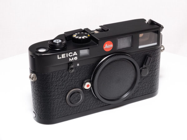 Die Leica M6 ist eine analoge Messsucherkamera, die vollständig manuell arbeitet und für ihre kompakte Bauweise sowie ihr klassisches Bedienkonzept geschätzt wird. Sie kombiniert mechanische Präzision mit einem integrierten, durch eine Batterie gespeisten Belichtungsmesser, der mittels LED-Anzeige im Sucher das manuelle Belichten unterstützt. Dank ihres robusten Messinggehäuses und der kompakten Abmessungen eignet sich die M6 besonders für diskrete Reportagefotografie.