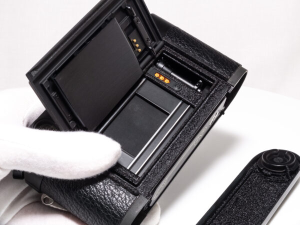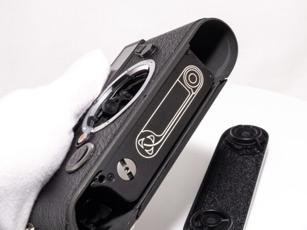 Dieses Exemplar befindet sich in einem technisch voll funktionsfähigen Zustand. Mit hochwertigerem Messingdeckel statt Zinkdruckgussdeckel. Dieser wurde wahrscheinlich auf Garantie bei Leica ausgetauscht. Die Gravur “Leica Camera GmbH” passt nämlich nicht zum Baujahr 1985 der Seriennummer. Das Gehäuse hat einzelne leichte Gebrauchsspuren.