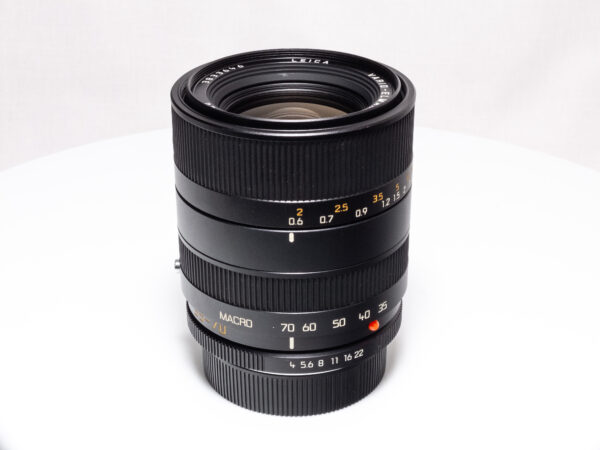 Das Leica Vario-Elmar-R 35–70 mm F4 ASPH [11277] ist ein hochwertiges Standard-Zoomobjektiv aus der R-Serie, das einen vielseitigen Brennweitenbereich für alltägliche Anwendungen abdeckt. Die konstante Lichtstärke von F4 über den gesamten Zoombereich sowie eine asphärische Linse sorgen für gleichmäßige Abbildungsleistung. Das ROM-Kontaktmodul ermöglicht die elektronische Kommunikation mit entsprechenden Leica-R-Kameras. Auch adaptiert an moderne digitale Systemkameras überzeugt dieses Objektiv in jeder Hinsicht!